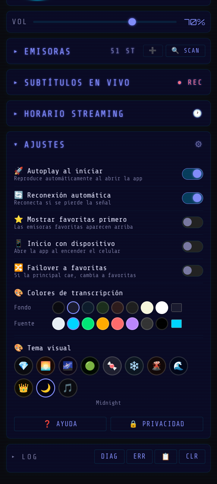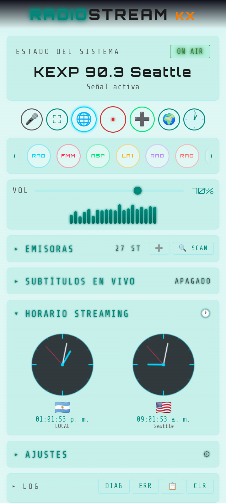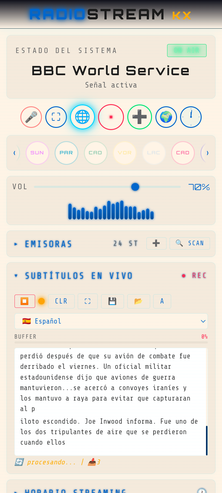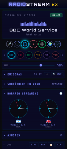 **Radio Stream KX** — The ultimate app to listen to world radios with real-time transcription.