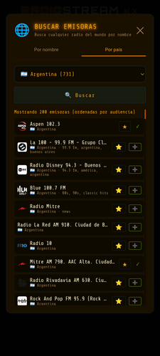 • **+40,000 Stations** — Search radios worldwide by name, country, or language