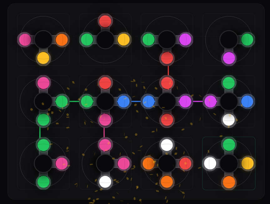 Cada spinner tiene un centro numerado y hasta 4 brazos con valores. Rota los spinners para que los brazos conectados entre sí muestren el mismo número. Cuando todas las conexiones coinciden, ¡has ganado!