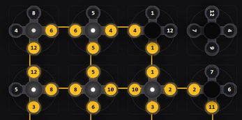 Each spinner has a numbered center and up to 4 arms with values. Rotate the spinners so that connected arms display the same number. When all connections match, you win! ...