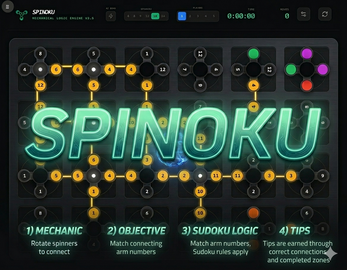 Un innovador juego de puzzle que combina lógica matemática con mecánica rotacional. Cada spinner tiene brazos numerados que debes alinear correctamente para resolver el tablero completo.